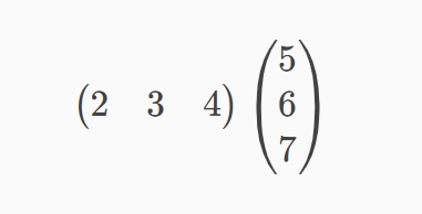 外山:まず、最初の例に当てはめます。入力した数値に重みをかけ、最後にそれらを足し合わせるという処理は、以下のような行列の積(内積)の形で書くことができます。